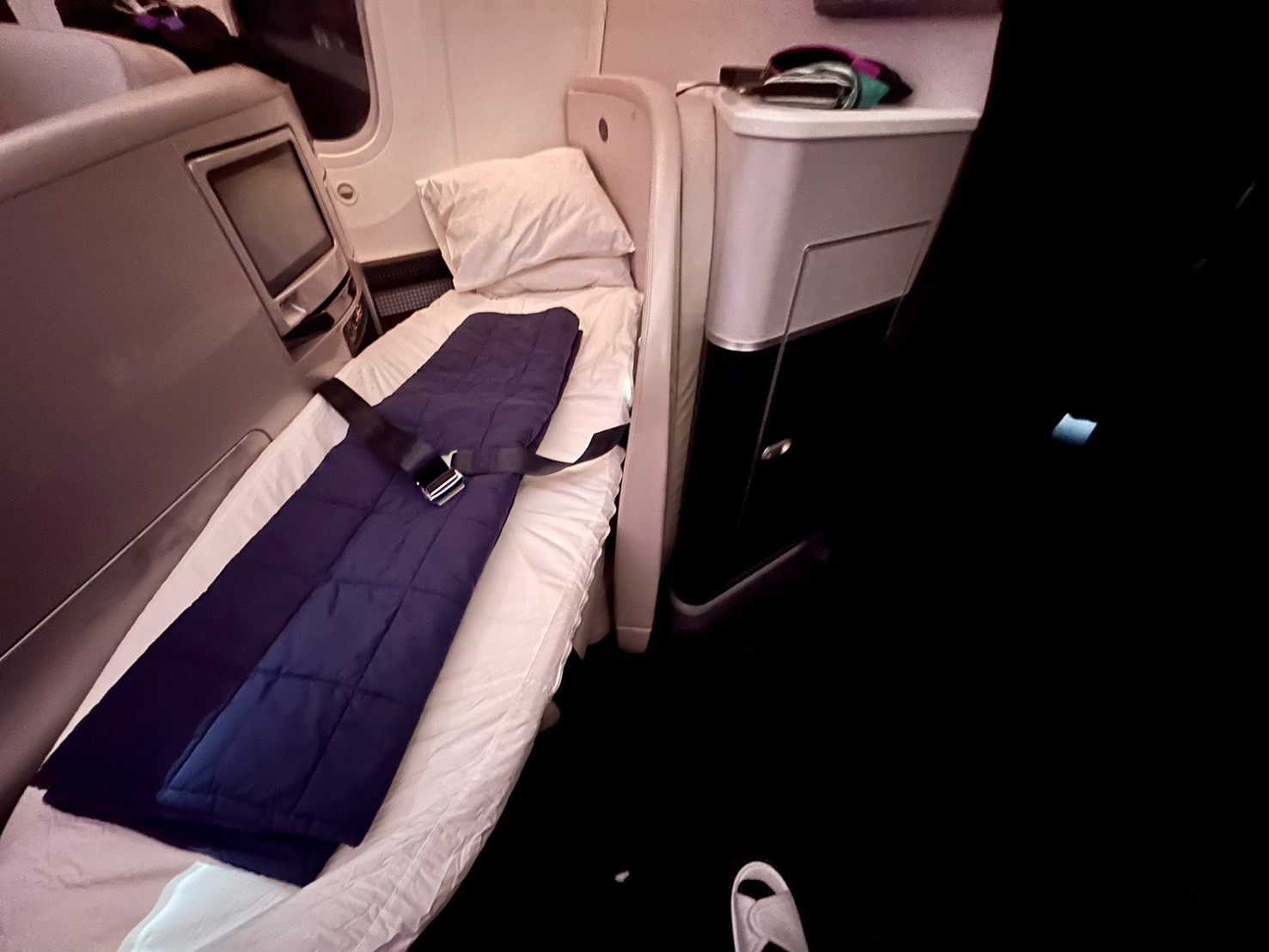 ビジネス・プレミアは、形状記憶マットレスはもちろん、フルサイズ枕、羽毛布団を備えており、フルフラットベッドになる、ソフトレザーの座席を備えています。
